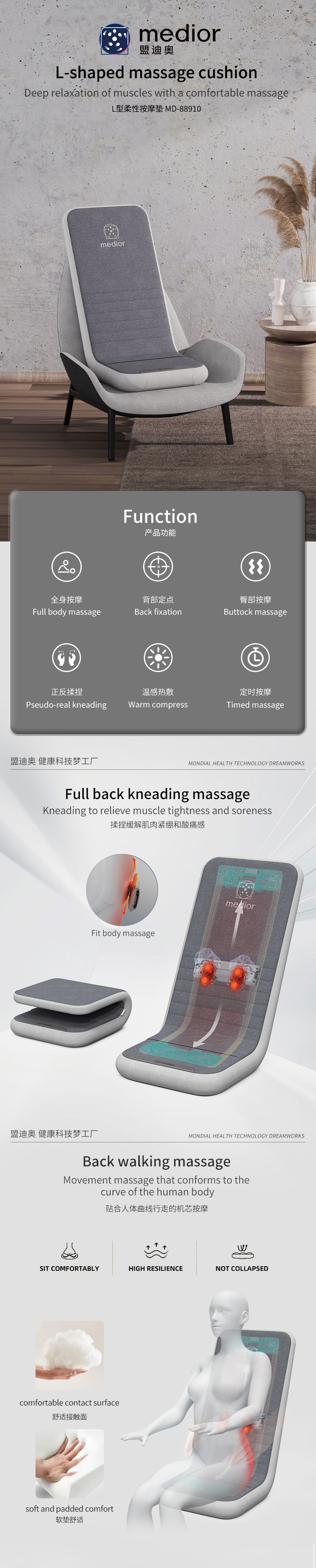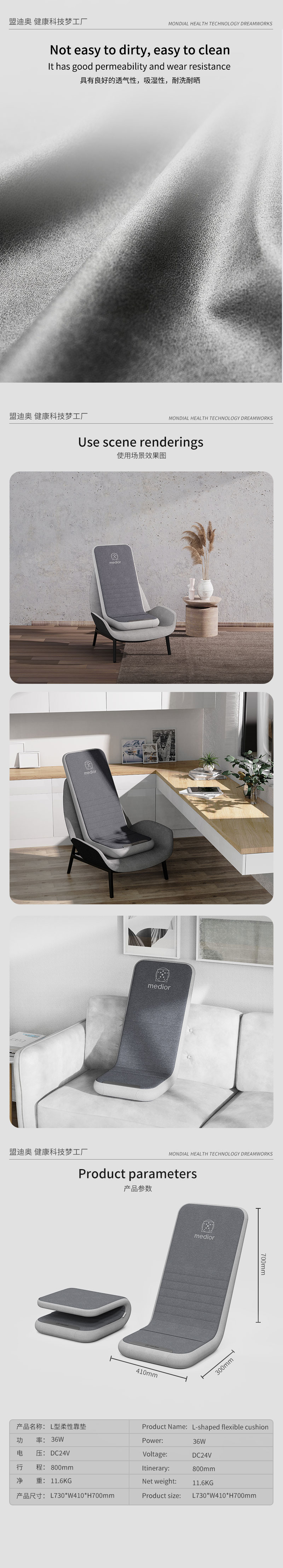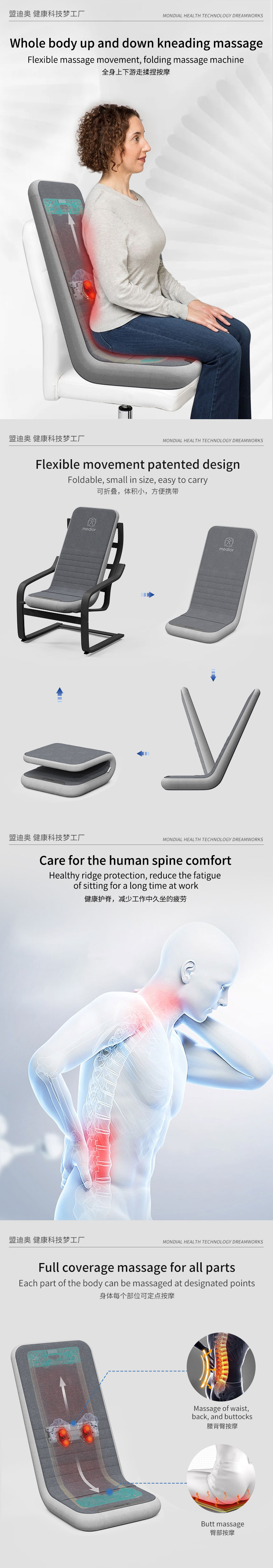 3、力度三檔調(diào)節(jié),定點(diǎn)按摩,腰背按摩、臀腿按摩、全背按摩模式選擇