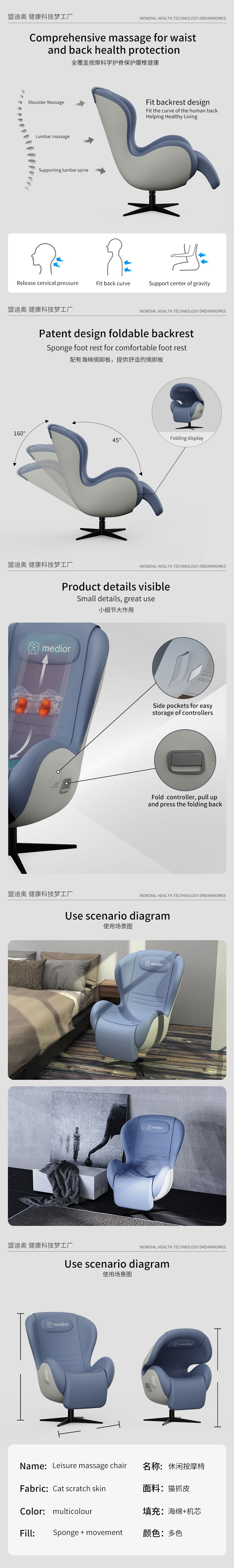 柔性休閑按摩椅 可坐可躺90-160°角度可調(diào)節(jié)仿真人揉捏按摩手法舒緩腰背 多功能遙控器一鍵啟動(dòng) 按摩行程95cm,從肩膀到小腿360°旋轉(zhuǎn)可拆卸披風(fēng) 方便清洗 獨(dú)家專利柔性機(jī)芯 超薄可折疊 包裝體積小