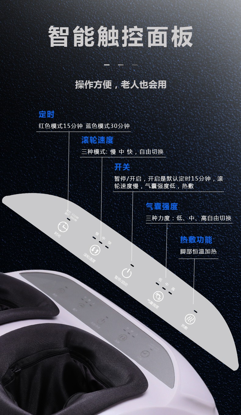 5個觸摸按鈕(安全氣囊,模式選擇,開關,氣壓,熱敷);