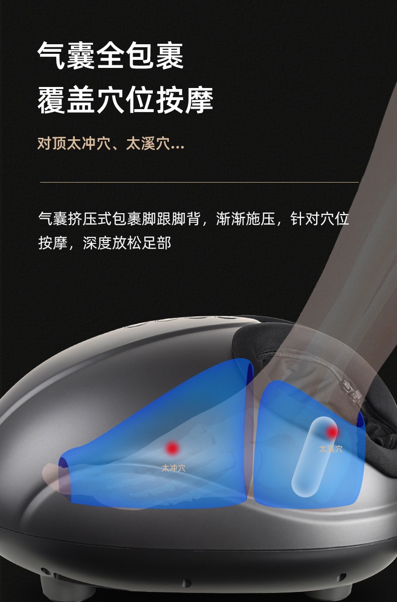 腳底 滾輪按壓(腳趾)、拖(腳底)、頂(腳后跟)按摩 (多模式,多強度)