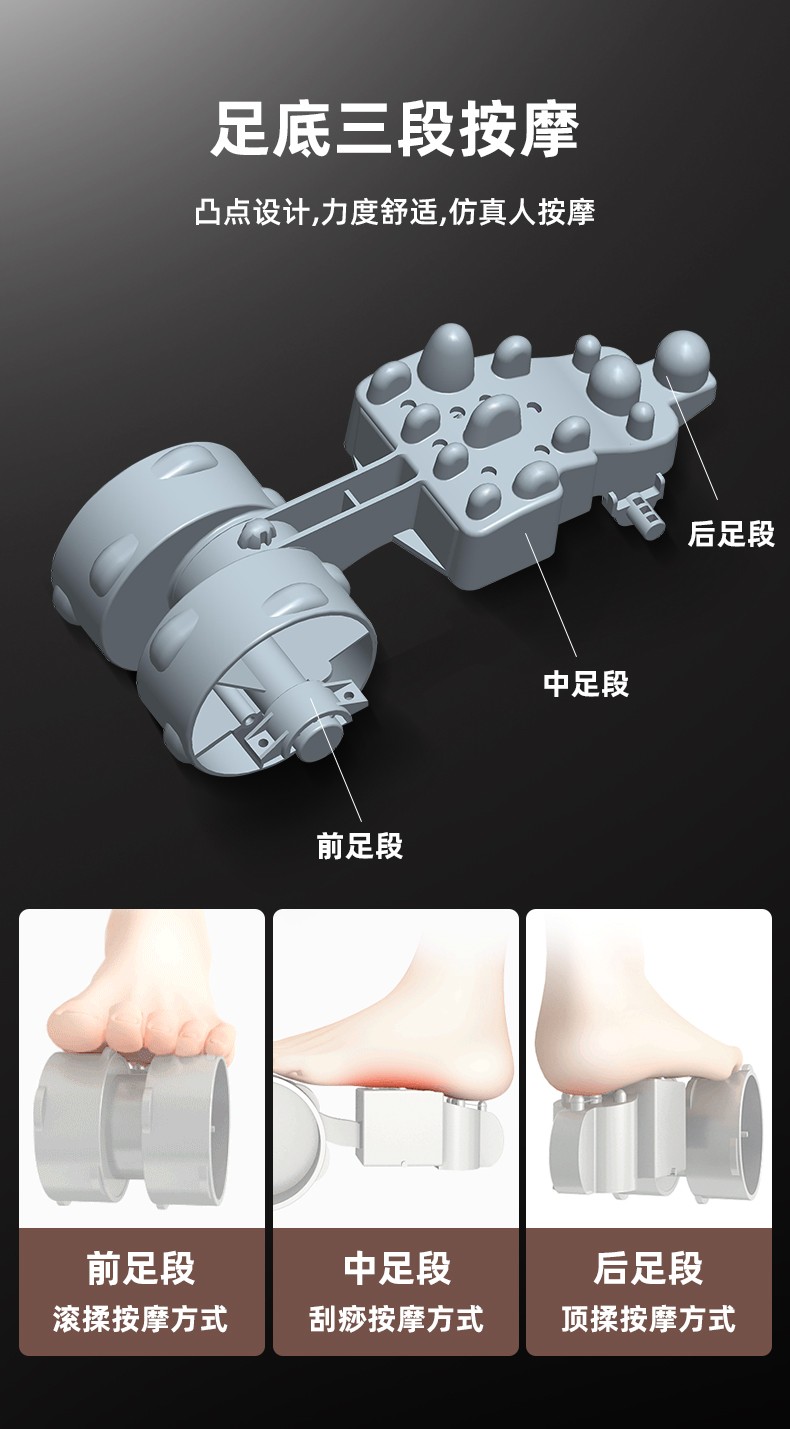 腳底 滾輪按壓(腳趾)、刮痧(腳底)、頂(腳后跟)按摩 (多模式,多強(qiáng)度)